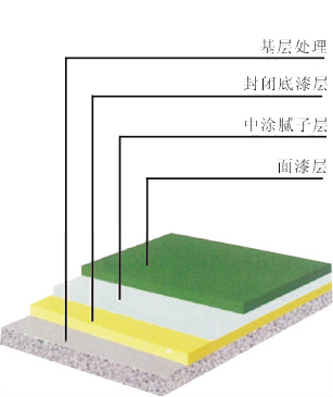 用環(huán)氧地坪中涂漆或環(huán)氧底漆調石英粉、雙飛粉批刮膩子層 | 環(huán)氧底漆、環(huán)氧中涂漆 |