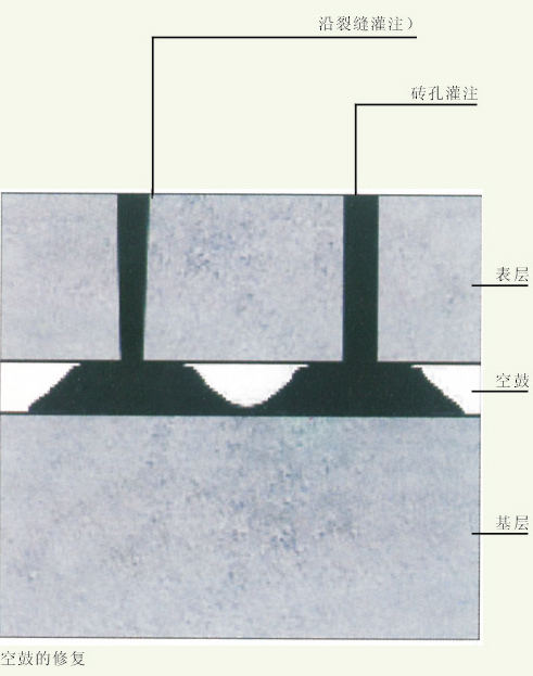 *將空鼓處切縫或打孔灌注環(huán)氧樹(shù)脂漿料。